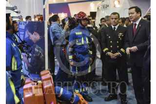 MÉXICO, D.F., 12NOVIEMBRE2015.- Miguel Ángel Osorio Chong, secretario de Gobernación, dio un recorrido por los stands de la Expo Bancomer 2015 conformada por empresas privadas e instituciones del Gobierno de la República, como Protección Civil, Comisión Nacional de Seguridad, Policía Federal, a propósito de la inauguración de la Segunda Convención Nacional de Protección Civil. En la imagen, Miguel Ángel Osorio Chong, secretario de Gobernación, Renato Sales Heredia, comisionado de Seguridad, y Luis Felipe Puente, coordinador de Protección Civil. FOTO: SEGOB /CUARTOSCURO.COM