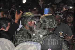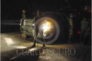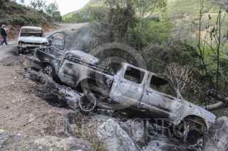 LEONARDO BRAVO, GUERRERO, 13NOVIEMBRE2015.- Militares fueron retenidos en la población de Carrizal, luego de que detuvieron a policías ciudadanos de la Unión de Pueblos y Organizaciones del Estado de Guerrero UPOEG, que tuvieron un enfrentamiento en el punto conocido como el rio cerca del poblado Ojo de Agua, con presuntos grupos delictivos. En el lugar los militares desarmaron y detuvieron a los policías comunitarios, razón por la que fueron retenidos por pobladores. Elementos de la Marina arribaron al lugar del enfrentamiento, en donde fueron calcinadas cuatro camionetas de la policía comunitaria, otras más quedaron varadas; aún se desconoce el paradero de los 11 policías comunitarios. FOTO: JOSÉ I. HERNÁNDEZ /CUARTOSCURO.COM
