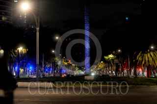 MÉXICO D.F., 14NOVIEMBRE2015.- Monumentos de la capital Mexicana, se unen en color a la Bandera de Francia en señal de duelo, en donde más de 100 personas han perdido la vida a causa de los atentados registrados el día de ayer. FOTO: LUIS CARBAYO /CUARTOSCURO.COM