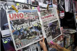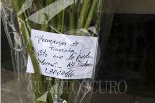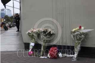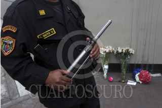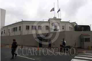 LIMA, PERÚ, 14NOVIEMBRE2015.- Elementos de la Policía Nacional de Perú implementaron un reforzamiento en la seguridad de las instalaciones de la Embajada de Francia en Lima, esto luego de los ataques perpetrados en París la noche de ayer. Algunas personas han llevado flores y dejado mensajes de solidaridad al pueblo francés. La embajada en territorio peruano ha programado una concentración para este domingo a las 14 horas. FOTO: FÉLIX MÁRQUEZ /CUARTOSCURO.COM