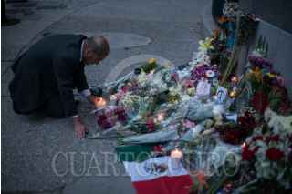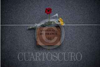 MÉXICO, D.F., 14NOVIEMBRE2015.- En las puertas de la embajada de Francia en México fueron entregadas muestras de solidaridad y luto por los ataques en París realizados la noche del viernes y que dejó como saldo 129 personas asesinadas y 300 más heridas. FOTO: ADOLFO VLADIMIR /CUARTOSCURO.COM