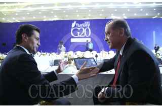 ANTALYA, REPÚBLICA DE TURQUÍA, 16NOVIEMBRE2015.- En el marco de la Cumbre de Líderes del Grupo de los 20, el Presidente Enrique Peña Nieto se reunió hoy con su homólogo de la República de Turquía, Recep Tayyip Erdogan, con quien conversó en torno a las negociaciones de un Tratado de Libre Comercio entre México y Turquía. FOTO: PRESIDENCIA /CUARTOSCURO.COM