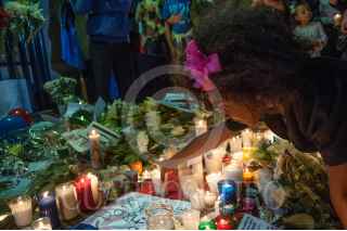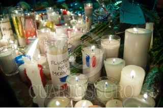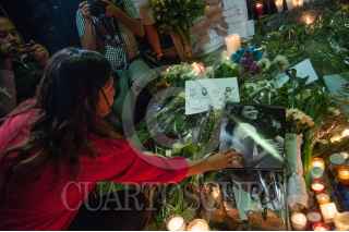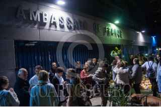 MÉXICO, D.F., 16NOVIEMBRE2015.- Decenas de franceses que radican en la ciudad, colocaron una ofrenda floral y veladoras afuera de la embajada de Francia en México como una muestra de solidaridad y protesta por los atentados que realizó el Estado Islámico en Paris el pasado viernes 13 donde murieron más de 120 personas. FOTO: DIEGO SIMÓN SÁNCHEZ /CUARTOSCURO.COM