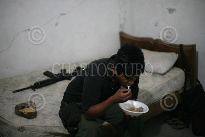 AQUILA, MICHOACÁN, 16NOVIEMBRE2015.- La Policía Comunitaria de Santa María Ostula, se ostenta cómo el último grupo vigente de Autodefensas en la entidad, a pesar de que el gobernador Silvano Aureoles advirtió que no iba a tolerar más grupos civiles armados realizando tareas de seguridad en el territorio que gobierna, implementando en cambio el Mando Único; protocolo que los municipios de Aquila, Cherán, Cahuayana, Chinicuila, rechazan aplicar por la desconfianza y los Usos y Costumbres de las comunidades índigenas. Los excomandados por el líder Cemeí Verdía continuan con las tareas de seguridad en gran parte del territorio del municipio de Aquila, ahora bajo el mando del Comandante Germán Ramírez, alias "Toro" en la imagen. FOTO: ALAN ORTEGA /CUARTOSCURO.COM