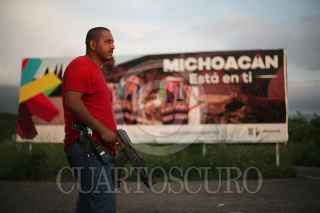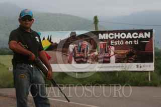 AQUILA, MICHOACÁN, 16NOVIEMBRE2015.- La Policía Comunitaria de Santa María Ostula, se ostenta cómo el último grupo vigente de Autodefensas en la entidad, a pesar de que el gobernador Silvano Aureoles advirtió que no iba a tolerar más grupos civiles armados realizando tareas de seguridad en el territorio que gobierna, implementando en cambio el Mando Único; protocolo que los municipios de Aquila, Cherán, Cahuayana, Chinicuila, rechazan aplicar por la desconfianza y los Usos y Costumbres de las comunidades índigenas. Los excomandados por el líder Cemeí Verdía continuan con las tareas de seguridad en gran parte del territorio del municipio de Aquila, ahora bajo el mando del Comandante Germán Ramírez, alias "Toro". FOTO: ALAN ORTEGA /CUARTOSCURO.COM