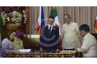 MANILA, REPÚBLICA DE FILIPINAS, 17NOVIEMBRE2015.- El Presidente Enrique Peña Nieto resaltó hoy, durante un mensaje conjunto con su homólogo de Filipinas, Benigno Aquino III, el interés y la voluntad de los Gobiernos de México y de Filipinas, de llevar la relación entre ambos países a una nueva etapa que signifique beneficio para sus poblaciones. FOTO: PRESIDENCIA /CUARTOSCURO.COM