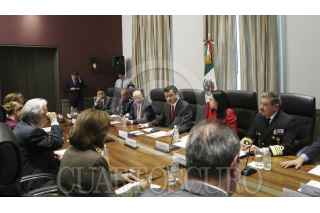 MÉXICO, D.F., 17NOVIEMBRE2015.- Miguel Ángel Osorio Chong, Secretario de Gobernación, encabezó la reunión del Comité Especial de Seguimiento y Evaluación de las Acciones para Prevenir, Investigar, Sancionar y Erradicar el Delito del Secuestro. La reunión contó con la presencia de El Comisionado Nacional de Seguridad, Renato Sales Heredia; la Consejera de la Judicatura Federal, Martha María del Carmen Hernández Álvarez; la Coordinadora Nacional Antisecuestro, Patricia Bugarín; Miguel Robles Bárcena, Secretario General del CISEN, y Rodrigo Archundia Barrientos, Coordinador de Combate al Secuestro del estado de México. FOTO: SEGOB /CUARTOSCURO.COM