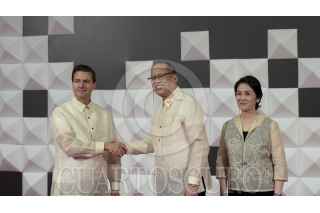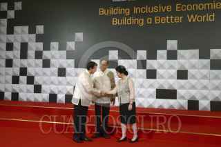 MANILA, REPÚBLICA, 18NOVIEMBRE2015.- El Presidente Enrique Peña Nieto asistió a la Cena de Bienvenida que ofreció a los líderes de las 21 economías que conforman la APEC, el Presidente de la República de Filipinas, Benigno Aquino III, y su esposa, a quienes saludó a su llegada. FOTO: PRESIDENCIA /CUARTOSCURO.COM