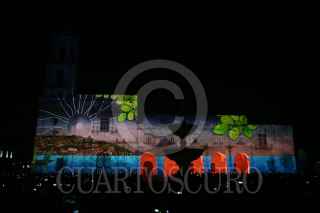 MORELIA, MICHOACÁN, 19NOVIEMBRE2015.- El primer Festival Internacional de Mapping de Morelia (FIMM) se inauguró la noche de ayer en el templo de San Francisco ubicado en la Plaza Valladolid, en el centro histórico. El festival se llevará a cabo del 18 al 21 de noviembre en el cuál se desarrollan, talleres, conferencias, concursos y exhibiciones de representantes internacionales. FOTO: ALAN ORTEGA /CUARTOSCURO.COM