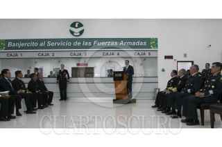 MÉXICO, D.F., 19NOVIEMBRE2015.- Luis Videgaray, secretario de Hacienda y Crédito Público, realizó la inauguración de dos nuevas sucursales del Banco Nacional del Éjercito y Fuerza Aérea y Armada (Banjército) en la colonia Agrícola Oriental. El evento contó con la presencia del general Salvador Cienfuegos Zepeda, secretario de la Defensa Nacional y del almirante Vidal Francisco Soberón Sanz, secretario de Marina. FOTO: SHCP /CUARTOSCURO.COM