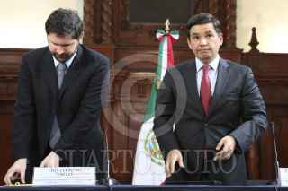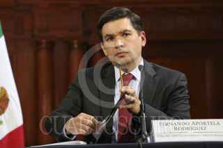 MÉXICO, D.F., 20NOVIEMBRE2015.- Fernando Aportela, Subsecretario de Hacienda y Crédito Público acompañado de Luis Zermeño Valles, coordinador de asesores de la SHyCP, en conferencia de prensa dieron cifras del crecimiento económico del 2015 que fue de un rango de 2.0-2.8%. FOTO: SAÚL LÓPEZ /CUARTOSCURO.COM