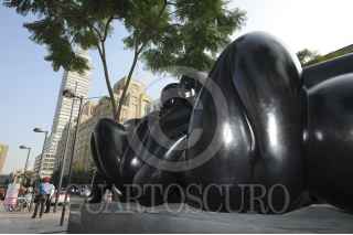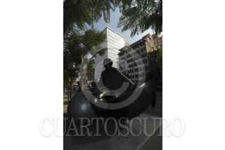 MÉXICO, D.F., 20NOVIEMBRE2015.- La Plaza de la República, el Paseo de la Reforma, la Alameda Central y la explanada del Palacio de Bellas Artes serán los escenarios que albergarán 15 esculturas de mármol y bronce del costarricense Jorge Enrique Jiménez Martínez, mejor conocido como Jiménez Deredia, por la contracción “de Heredia”, su ciudad natal. Las esculturas de aspectos circulares están inspiradas en una visión cósmica del ser humano, donde una forma elemental como una esfera es capaz de transformarse en figura humana, por lo que narran el proceso de la vida y la creación. Según Deredia, sus piezas nos harán “tomar consciencia de que somos polvo de estrellas en transmutación”. FOTO: ARMANDO MONROY /CUARTOSCURO.COM