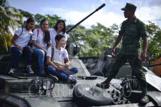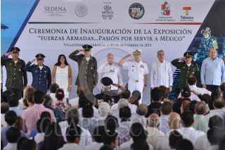 VILLA HERMOSA, TABASCO, 20NOVIEMBRE2015.- Salvador Cienfuegos Zepeta, Secretario de la Defensa Nacional, Arturo Nuñez, Gobernador del Estado de Tabasco y Vidal Francisco Soberón Sanz, presidieron la ceremonia de inauguración de la exposición "Fuerzas armadas… pasión por servir a México", realizada en la Ciudad Deportiva. FOTO: ADOLFO VLADIMIR /CUARTOSCURO.COM
