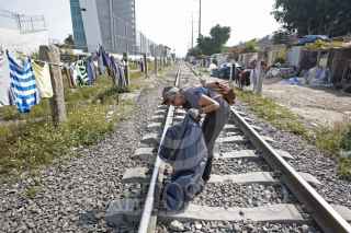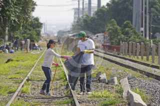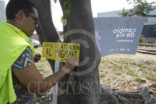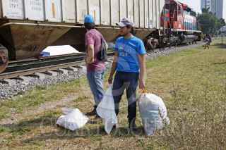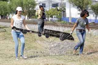 GUADALAJARA, JALISCO. 21NOVIEMBRE2015.- Hoy en el marco de la campaña coordinada entre Amnistía Internacional y Fm4 Paso Libre, se realizo la "Intervención y rehabilitación del espacio en vías del tren e instalación de señalamientos de la nueva casa FM4 de apoyo al migrante", en donde un grupo de voluntarios y activistas trabajaron en el área de las vías cercana al Centro de Atención al Migrante de Fm4 Paso Libre (Av. Inglaterra entre Calderón de la Barca y Lope de Vega) para recuperar los espacios que son de todas/os y ayudar en la construcción de crear una comunidad hospitalaria, unida e incluyente con la población migrante. FOTO: FERNANDO CARRANZA GARCIA / CUARTOSCURO.COM
