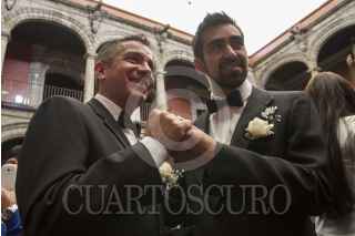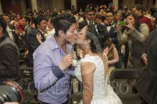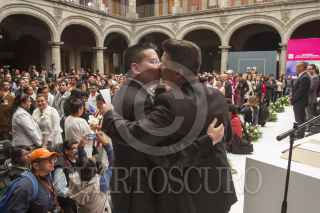 MÉXICO, D.F., 22NOVIEMBRE2015.- Decenas de parejas LGBTTTI participaron en la boda colectiva en el Museo de la Ciudad de México, organizada por el Gobierno del Distrito Federal. FOTO: ISAAC ESQUIVEL /CUARTOSCURO.COM