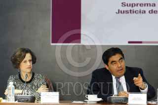 MÉXICO, D.F., 23NOVIEMBRE2015.- El senador Mario Delgado conversa con la periodista Denise Dresser al finalizar el foro "Análisis de Integración de la Suprema Corte de Justicia de la Nación", que se realizó en el Senado. FOTO: CUARTOSCURO.COM