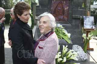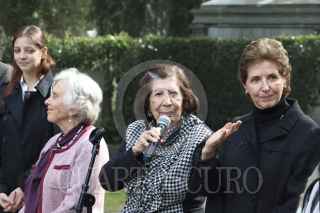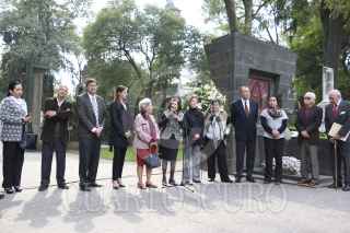 MÉXICO, D.F., 23NOVIEMBRE2015.- Guadalupe Rivera, hija del Diego Rivera acompañada del la titular del INBA, María Cristina García Cepeda de la escritora, Elena Poniatowska Amor y descendientes de Diego Rivera, realizaron un homenaje y una guardia de honor en la rotonda de los hombres ilustres para conmemorar el 58 aniversario luctuoso del muralista mexicano. FOTO: SAÚL LÓPEZ /CUARTOSCURO.COM