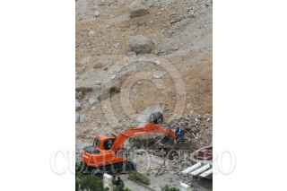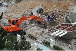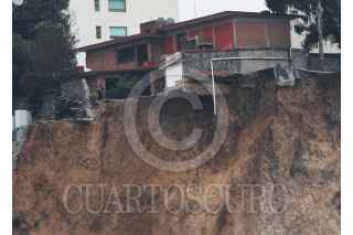 MÉXICO, D.F., 24NOVIEMBRE2015.- Peritos de la Procuraduría General de Justicia e investigadores identificados como pertenecientes a la UNAM acudieron esta mañana al inmueble Altavista 111, ubicado al interior del residencial Vista del Campo, en Vistahermosa, Santa Fe, para realizar un peritaje en el inmueble y determinar el plan de derrumbe de la casa habitación. Mientras tanto, a un costado del desfiladero en la parte inferior del residencial, personal trabaja para remover escombro derivado del segundo deslave. Se desconoce hasta el momento la fecha exacta en el que el inmueble con número 111 será derribado. FOTO: MARÍA JOSÉ MARTÍNEZ /CUARTOSCURO.COM