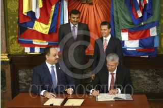 MÉXICO, D.F., 24NOVIEMBRE2015.- En el Salón Embajadores del Palacio Nacional, el Presidente Enrique Peña Nieto y Su Alteza Jeque Tamim bin Hamad Al Thani, Emir del Estado de Qatar, quien realiza una Visita Oficial a México, presidieron una reunión con sus respectivas comitivas en la que se revisaron los diferentes temas de la relación entre ambas naciones, con el objeto de fortalecer sus vínculos. FOTO: PRESIDENCIA /CUARTOSCURO.COM
