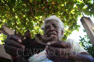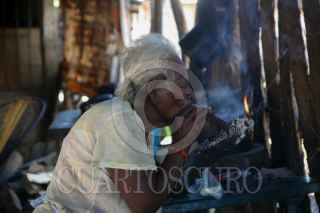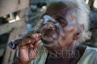 CUAJINICUILAPA, GUERRERO, 25NOVIEMBRE2015.- La señora Leonor Román quien desde la juventud trabajo en algunos plantíos de plantas de tabaco relata que en su pueblo el Pitahayo vivió una época de oro en esta actividad. La mujer pasa los días fumando un puro echo por sus propias manos, sentencia que la siembra de tabaco es una actividad que ya murió en esta zona. El área utilizada para este fin se redujo de 38 mil 402 hectáreas en 1980 a tan sólo 7 mil 428 en el año anterior, es decir, un 81 por ciento menos. FOTO: BERNANDINO HERNÁNDEZ /CUARTOSCURO.COM