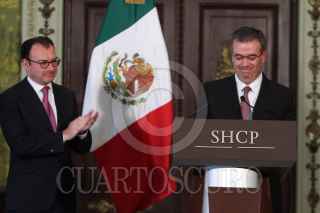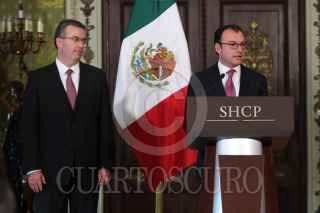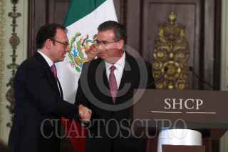 MÉXICO, D.F., 25NOVIEMBRE2015.- Luis Videgaray, titula de la Secretaria de Hacienda y Crédito Público, anunció él nombramiento de Alejandro Díaz de León como nuevo titular del Banco Nacional de Comercio Exterior. El nuevo titular de Bancomext era el encargado de la Unidad de Crédito al Público, cargo que fue ocupado por Alberto Torres. FOTO: ISABEL MATEOS /CUARTOSCURO.COM