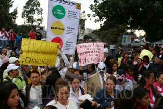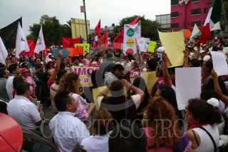 CIUDAD NEZAHUALCOYOTL, ESTADO DE MÉXICO, 25NOVIEMBRE2015.- Integrantes de organizaciones sociales y militantes del PRD, se manifestaron a las afueras de la Procuraduría de Justicia del Estado de México para exigir un alto a la violencia contra las mujeres y pidieron a las autoridades esclarezcan los feminicidios que se han registrado en la entidad. FOTO SAÚL LOPEZ /CUARTOSCURO.COM