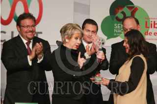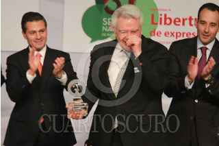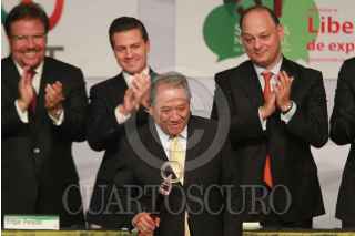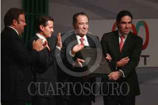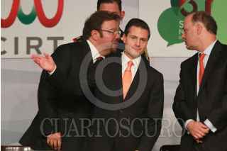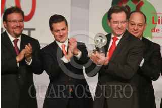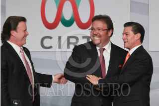 MÉXICO, D.F., 25NOVIEMBRE2015.- Enrique Peña Nieto asistió a la entrega de los premios a la Radio y la Televisión que entrega la CIRT y que se realizo en la expo Bancomer. En la imagen Aljandro Gracía, Edgar Pereda y Enrique Peña Nieto FOTO: DIEGO SIMÓN /CUARTOSCURO.COM