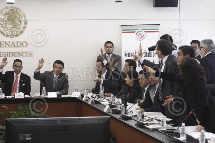 MÉXICO, D.F., 26NOVIEMBRE2015.- A pesar de las protestas de senadores del PRD, se realizó la sesión de la Comisión de Radio y Televisión del Senado de la República. FOTO: ISAAC ESQUIVEL /CUARTOSCURO.COM