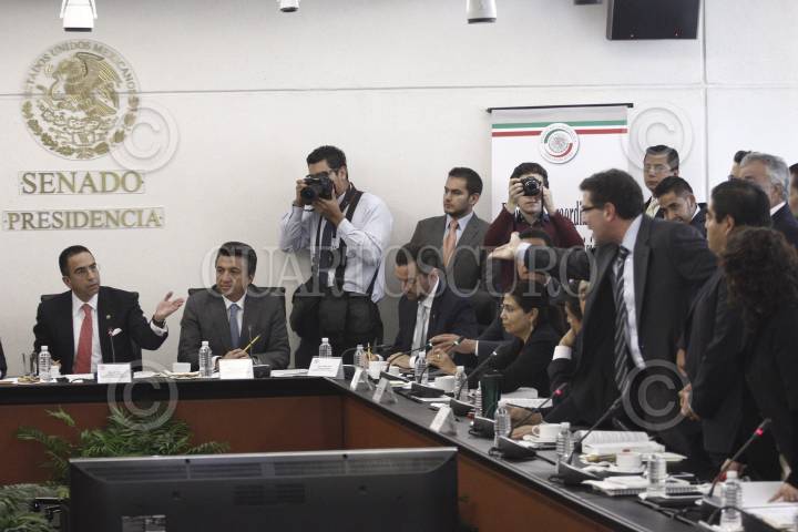 MÉXICO, D.F., 26NOVIEMBRE2015.- A pesar de las protestas de senadores del PRD, se realizó la sesión de la Comisión de Radio y Televisión del Senado de la República. FOTO: ISAAC ESQUIVEL /CUARTOSCURO.COM