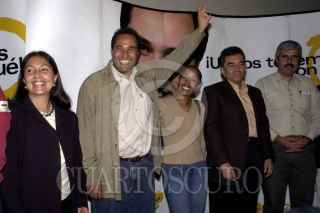 Lázaro Cárdenas Batel, su esposa Mayra Coffigny y los presidentes de los partidos que formaron la coalición Unidos por Michoacán, Guillermo Rizo de Convergencia por la Democracia y José Narro del Partido del Trabajo, celebran de manera parcial. FOTO: Oswaldo Ramírez/Enviado/CUARTOSCURO.COM