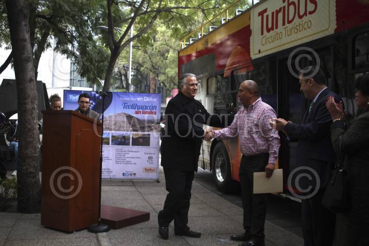 MÉXICO, D.F., 26NOVIEMBRE2015.- La Secretaría de Turismo de la Ciudad de México lanzó el nuevo proyecto turístico "TuriSky Vuelo en globo", del cual podrán beneficiarse todos los capitalinos. El costo por persona será de $2500.00 pesos, incluirá el transporte a Teotihuacán y un viaje en globo que recorrerá la zona arqueológica. En la imagen Miguel Torruco Márquez, titular de la secretaria de turismo en la Ciudad de México, Gerardo Pastrana Santacruz, gerente general de ADO y Sergio Ramírez García, director general de Volar en Globo durante el banderazo simbólico del lanzamiento de "TuriSky". FOTO: ISABEL MATEOS /CUARTOSCURO.COM