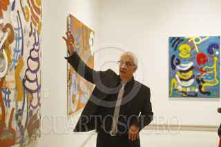 GUADALAJARA, JALISCO. 26NOVIEMBRE2015.- Esta mañana en el Museo de las Artes MUSA, de la Universidad de Guadalajara, se llevo a cabo una rueda de prensa para dar a conocer las exposiciones que se realizaran en ya mencionado museo durante la Feria Internacional del Libro en Guadalajara FIL, una de ellas es la de “Slipping Glumpsers”, por la que se realizo un recorrido y en donde participan los artistas británicos, el pintor Gerorge Blacklock, y el cineasta Gary Oldman, el primero quien si estuvo en dicho evento dio una explicación de la exposición en la que participa en conjunto con David. Otra de las obras que se exhibirán el la del artista David Hockney, de nombre “Words & Pictures”. FOTOS: FERNANDO CARRANZA GARCIA / CUARTOSCURO.COM