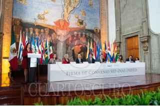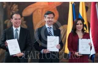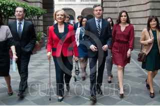 MÉXICO, D.F., 26NOVIEMBRE2015.- Héctor Gutiérrez de la Garza, director general del Instituto de Infraestructura Física Educativa; Aurelio Nuño Mayer, titular de la SEP y Ximena Puente de la Mora, comisionada del Instituto Nacional de Transparencia, Acceso a la Información y Protección de Datos Personales, encabezaron la firma de convenio entre dichas dependencias de gobierno, en el salón Hispanoamericano de la SEP. FOTO: DIEGO SIMÓN SÁNCHEZ /CUARTOSCURO.COM