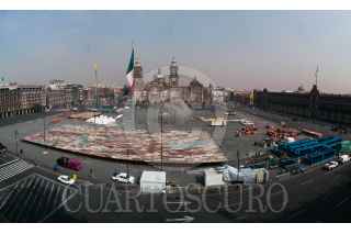 MÉXICO, D.F., 26NOVIEMBRE2015.- Trabajadores del gobierno, comenzaron a instalar lo que será la pista de hielo y el árbol navideño en la plancha del zócalo capitalino, para que miles de personas disfruten de dichas atracciones esta temporada decembrina. FOTO: DIEGO SIMÓN SÁNCHEZ /CUARTOSCURO.COM