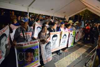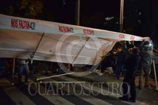 MÉXICO, D.F., 26NOVIEMBRE2015.- Al finalizar la marcha en demanda por la aparición con vida de los 43 normalistas desaparecidos de Ayotzinapa al cumplirse 14 meses del ataque en Iguala, Guerrero, los familiares instalaron del plantón en la esquina de Pase de la Reforma y Chivatito. FOTO: ADOLFO VLADIMIR /CUARTOSCURO.COM