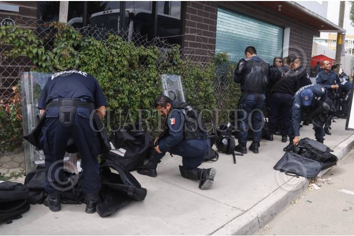 TLALIXTAC DE CABRERA, OAXACA, 27NOVIEMBRE2015.- Cinco mil elementos de la Policía Federal resguardan las inmediaciones de la Ciudad Administrativa, complejo gubernamental en el que se llevará a cabo este sábado la aplicación de la evaluación docente, esto con la intención de evitar cualquier intento de boicot por parte de profesores de la sección 22 de la CNTE. Los uniformados revisan los vehículos que ingresan a la zona del cerco y que viven o trabajan en la zona. FOTO: ARTURO PÉREZ ALFONSO /CUARTOSCURO.COM