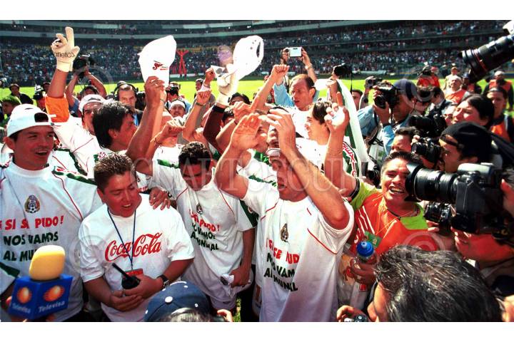 Después de que Javier Aguirre asumió la dirección tecnica de la Selección Nacional por los pésimos resultados que obtuvo y a pesar de peligrar su estancia en el Mundial Japón-Korea 2002, esta tarde los "Muchchos del Vasco" obtuvieron su pase a derrotar a Honduras tres goles contra cero. FOTO: Pedro Mera/CUARTOSCURO.COM