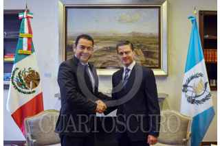 MÉXICO, D.F., 27OCTUBRE2015.- El presidente Enrique Peña Nieto se reunió con el presidente electo de Guatemala, Jimmy Morales, en la Residencia Oficial de Los Pinos, con quien dialogó en torno a los proyectos conjuntos que promoverán para fortalecer la productividad y competitividad de ambas economías. FOTO: PRESIDENCIA /CUARTOSCURO.COM