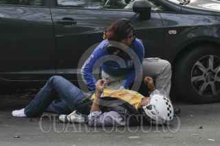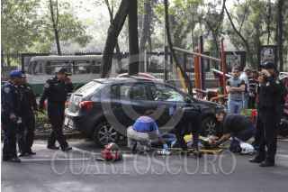 MÉXICO, D.F., 28NOVIEMBRE2015.- Un motociclista fue atendido por paramédicos después de que un automóvil lo impactó para rebasarlo. El automovilista se dio a la fuga y además provocó que otro automovilista colisionara contra el camellón central de Av. Reforma a la altura del Museo de Antropología. FOTO: MARÍA JOSÉ MARTÍNEZ /CUARTOSCURO.COM