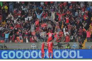 TOLUCA, ESTADO DE MÉXICO, 29NOVIEMBRE2015.-José Saturnino Cardozo, director técnico del Toluca y sus jugadores, festejan el pase a semifinales del torneo Apertura 2015 luego de vencer tres goles sobre dos en marcador global a Puebla, en el estadio Nemesio Diez. FOTO: DIEGO SIMON SANCHEZ /CUARTOSCURO.COM