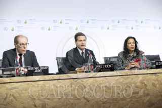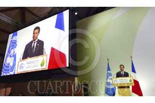 PARÍS, FRANCIA, 30NOVIEMBRE2015.- El Presidente Enrique Peña Nieto participó en la Primera Sesión de Jefes de Estado de la Conferencia de los Estados Parte en la Convención Marco de las Naciones Unidas sobre el Cambio Climático en donde manifestó que México no podía faltar a esta cita histórica por dos razones: “es un actor que asume su responsabilidad global y es un país especialmente vulnerable a los efectos de este fenómeno mundial”. FOTO: PRESIDENCIA /CUARTOSCURO.COM
