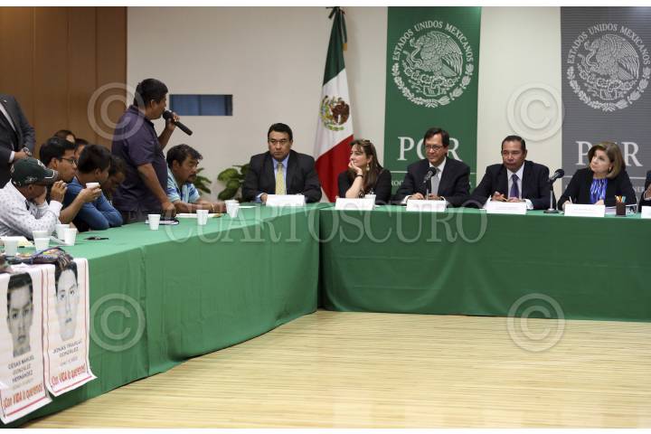 MÉXICO, D.F., 30NOVIEMBRE2015.- Felipe de la Cruz, vocero de los papás de Ayotzinapa y abogado Vidulfo Rosales, salen de la PGR en donde sostuvieron una reunión con la procuradora y los padres de los 43 normalistas desparecidos en Iguala el pasado 26 de septiembre de 2014. FOTO: PGR /CUARTOSCURO.COM