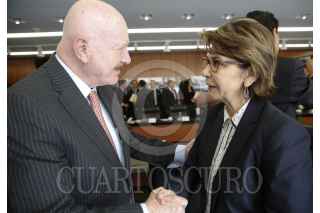 MÉXICO, D.F., 30NOVIEMBRE2015.- Manuel Mondragón, Comisionado Nacional contra las Adicciones, saluda a la senadora Angélica de la Peña, durante la instalación del Consejo Técnico Para las Alternativas de la Regulación de la Mariguana en el Senado de la República. FOTO: CUARTOSCURO.COM