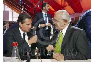 PARÍS, FRANCIA, 30NOVIEMBRE2015.-En el marco de la Conferencia de las Partes (COP21) sobre Cambio Climático, el Presidente Enrique Peña Nieto saludó al Premio Nobel de Química Mario Molina, Presidente del Centro Mario Molina para Estudios Estratégicos sobre Energía y Medio Ambiente. FOTO: PRESIDENCIA /CUARTOSCURO.COM