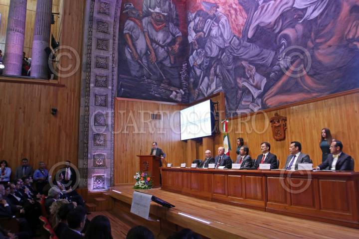 GUADALAJARA, JALISCO. 30NOVIEMBRE2015.-El Ex Rector de la UNAM, Juan Ramón de la Fuente, fue reconocido hoy en el Paraninfo Enrique Díaz de León, con el Doctorado Honoris Causa por la Universidad de Guadalajara, esto en el marco de la edición 29 de la Feria Internacional del Libro de Guadalajara FIL, que tiene como país invitado de honor al Reino Unido. FOTO: FERNANDO CARRANZA GARCIA / CUARTOSCURO.COM