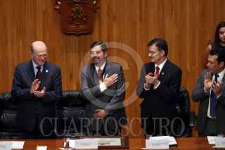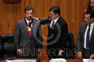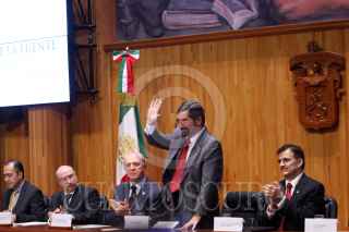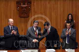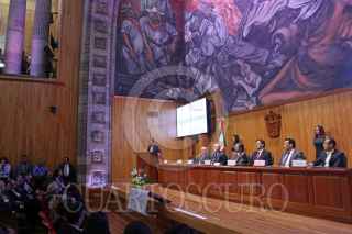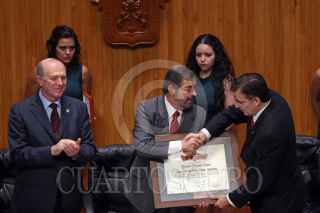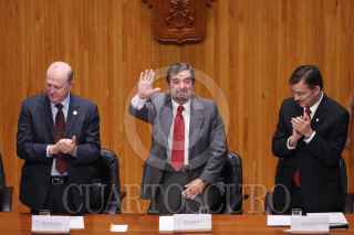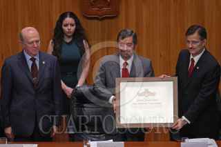 GUADALAJARA, JALISCO. 30NOVIEMBRE2015.-El Ex Rector de la UNAM, Juan Ramón de la Fuente, fue reconocido hoy en el Paraninfo Enrique Díaz de León, con el Doctorado Honoris Causa por la Universidad de Guadalajara, esto en el marco de la edición 29 de la Feria Internacional del Libro de Guadalajara FIL, que tiene como país invitado de honor al Reino Unido. FOTO: FERNANDO CARRANZA GARCIA / CUARTOSCURO.COM