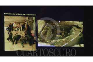 MÉXICO, D.F., 30NOVIEMBRE2015.- Imágenes en donde se aprecia la remoción de la lápida de andesita de tres toneladas, durante las labores de exploración en el lado norte del Cuauhxicalco, en el marco de la Primera Mesa Redonda de Tenochtitlan. FOTO: PTM-INAH /CUARTOSCURO.COM