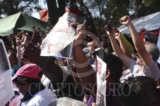 MÉXICO, D.F., 01DICIEMBRE2015.- Padres de los 43 estudiantes normalistas de Ayotzinapa, en conferencia de prensa informaron que de acuerdo a la junta con la titular de PGR Arely Gomez, ellos cumplirán su palabra y retiraran el plantón que mantenían en Chivatito y avenida Reforma, y esperan que de la misma forma las autoridad es cumplan con los acuerdos. FOTO: ISABEL MATEOS /CUARTOSCURO.COM