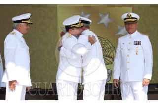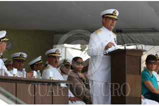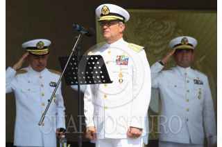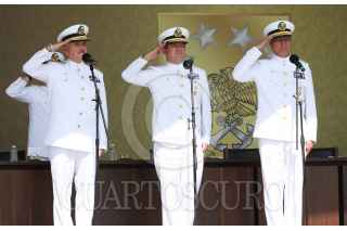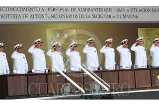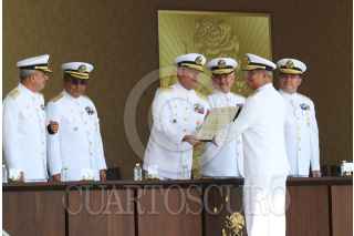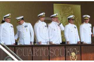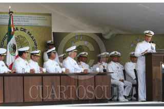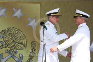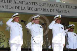 ANTÓN LIZARDO, VERACRUZ, 01DCIEMBRE2015.- Vidal Francisco Soberón Sanz, secretario de Marina, presidió la “Ceremonia de Reconocimientos al Personal de Almirantes que pasan a Situación de Retiro y Toma de Protesta a Altos Funcionarios de la Secretaría de Marina”, en donde hizo entrega de reconocimientos a altos mandos jubilados después de 48 años de labor ininterrumpida, y al mismo tiempo tomó protesta a los funcionarios que ocuparán tales cargos. La ceremonia se realizó en la Heroica Escuela Naval Militar. Como subsecretario de Marina rindió protesta Joaquín Zetina Angulo, como nuevo Contralor General, Ángel Sarmiento Beltrán, y por último, José Luis Vergara, quien ocupará el cargo de Oficial Mayor de Marina. FOTO: MARÍA JOSÉ MARTÍNEZ /CUARTOSCURO.COM