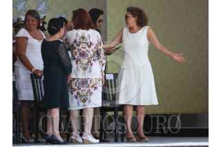 ANTÓN LIZARDO, VERACRUZ, 01DCIEMBRE2015.- En la imagen, Georgina Menchaca, esposa del secretario de Marina, Vidal Francisco Soberón Sanz, durante la “Ceremonia de Reconocimientos al Personal de Almirantes que pasan a Situación de Retiro y Toma de Protesta a Altos Funcionarios de la Secretaría de Marina”, en donde hizo entrega de reconocimientos a altos mandos jubilados después de 48 años de labor ininterrumpida. FOTO: MARÍA JOSÉ MARTÍNEZ /CUARTOSCURO.COM